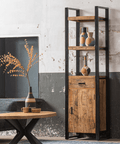 Voor deze smalle, stoere boekenkast is het wel heel makkelijk om een mooie plek uit te zoeken! De kast heeft door het mangohout een warme uitstraling gekregen en doordat de kast op poten staat, zorgt het voor een ruimtelijk effect in elke kamer.