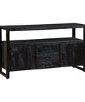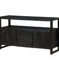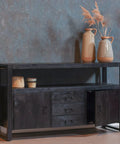 Mangohouten Dressoir Pittsburgh Black 140 cm met 3 lades en 2 deuren Mahom