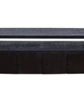 Het massieve mangohout is eerst gezandstraald, vervolgens behandeld met zwarte verfbeits en tenslotte afgewerkt met een donkere, natuurlijke bijenwas om het hout te beschermen tegen vocht, vuil en kringen. De metalen frames en handgrepen zijn behandeld met een zwarte poedercoating.