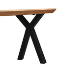 Over het mangohout worden meerdere lagen houtolie en een blanke, natuurlijke bijenwas aangebracht om het hout te beschermen tegen vocht, vuiligheid en kringen. De X-poten met uniek design zijn gemaakt van zwart gepoedercoat metaal.