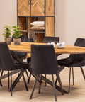De eettafels uit de Bologna-collectie zijn beschikbaar in naturel en zwart mangohout en zijn verder in meerdere maten verkrijgbaar vanaf 160 cm tot en met 300 cm breed.