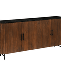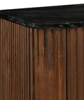 Het dressoir straalt met zijn verfijnde walnootkleurige afwerking, die niet alleen de natuurlijke pracht van het mangohout benadrukt, maar tevens langdurige duurzaamheid waarborgt. Het marmeren bovenblad voegt een vleugje weelde toe aan het geheel, waardoor het dressoir als een ware blikvanger in elke kamer fungeert.