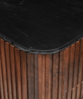 Dit meubel is prachtig vervaardigd in een verfijnde walnootkleur, waardoor de natuurlijke schoonheid van het mangohout wordt benadrukt, terwijl duurzaamheid gewaarborgd blijft. Het marmeren bovenblad voegt een vleugje luxe toe en transformeert dit meubelstuk tot een opvallend middelpunt in elke kamer.