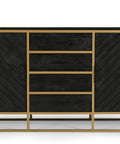Bent u op zoek naar een zwart dressoir met gouden accenten, maar wilt u net wat anders dan de andere zwarte dressoirs uit onze collectie? Kies dan voor dit chique, ruimtelijke dressoir met visgraat motief. Verder beschikt het dressoir over vier ruime lades en achter ieder deurtje twee grote vakken om van alles op te bergen. Zo heeft u een fantastisch nieuw dressoir en blijft de woning ook nog eens opgeruimd!