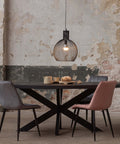 Deze fraaie, grote eettafel heeft een ovalen vorm wat voor enorm veel ruimte en gezelligheid in de eetkamer zorgt. De metalen matrixpoot zorgt voor een chique uiterlijk, waardoor de tafel moeiteloos in elke grote ruimte past.
