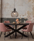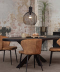 Dit is onze grootste zwarte eettafel uit onze uitgebreide Tulsa-collectie en het is de stoerste van allemaal! De tafel heeft een robuust blad dat wordt ondersteund door een grote metalen matrixpoot. Door de vorm neemt de tafel ook nog eens een stuk minder ruimte in dan een rechthoekige tafel van dezelfde lengte.