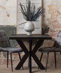 Deze zwarte Memphis eettafel is perfect voor iedere ruimte. Het geheel van zwart mangohout en zwarte matrixpoot springt in elke kamer naar voren. Met zijn compacte formaat is er ook nog eens overal wel een plekje voor te vinden!