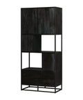 Speels en stijlvol met een fantastische uitstraling! De smalle vakkenkast Florence barst van de mogelijkheden. Het unieke design van de kast is gecombineerd met een chique combinatie van zwart mangohout en metaal, wat het meubel perfect laat passen in een industrieel interieur. Met zijn vier kastjes, twee open vakken en vier lades kunt u van alles in de kast opbergen.
