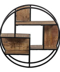 Het wandrek van mangohout heeft verschillende vakken en een diameter van 60, 80 of 100 cm. Hij is beschikbaar in rond of vierkant.
