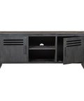 TV meubel Henderson, geïnspireerd op de welbekende lockerkasten van vroeger, is door de combinatie van zwart mangohout en de stalen details een stoere en robuuste toevoeging aan uw woonkamer. Achter de deurtjes en op de planken is genoeg ruimte aanwezig om van alles in op te kunnen bergen.