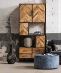 Ook het kleine broertje van de vakkenkast New Haven XXL heeft enorm veel opbergruimte! De 90 cm brede kast heeft een losse indeling van open en dichte vakken en daaronder zitten nog vier lades om kleine voorwerpen op te ruimen. De deurtjes van de kast hebben een visgraatpatroon, wat toch voor een elegant effect in de kamer zorgt.
