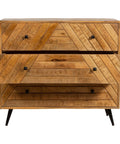 Ontdek de perfecte combinatie van stoer en stijlvol met het mangohouten dressoir Alamo van 90 cm breed. Het unieke motief geeft uw interieur direct een opvallende uitstraling. Met zijn stevige constructie en duurzame materialen is dit dressoir een eyecatcher die ook functioneel is en jarenlang plezier biedt. Dit dressoir bevat drie ruime lades.