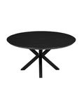 The mango wood top is solid and has a thickness of 2.5 centimeters. Several layers of wood oil and a clear, natural beeswax are applied to the mango wood to protect the wood against moisture, dirt and rings. The spider leg is made of black powder-coated metal.
