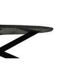 The mango wood top is solid and has a thickness of approximately 2.5 centimeters. Several layers of wood oil and a clear, natural beeswax are applied to the mango wood to protect the wood against moisture, dirt and rings. The spider legs are made of black powder-coated metal.