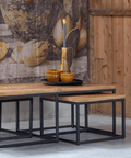 Mango wood coffee table set Miami with 3 Mahom tables