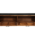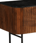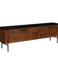 The Mango wood TV cabinet Austin 180 cm is a stylish addition to any interior. With a beautiful walnut-colored lacquer layer and an elegant marble top, this piece of furniture exudes pure class.