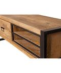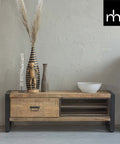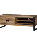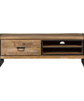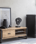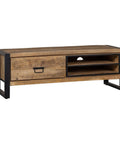 The Stockton TV cabinet is one of the highlights from our collection! The combination of the warm mango wood and the sturdy black metal exudes a cool industrial look. This is the smallest size of the Stockton television furniture, so the furniture really fits perfectly in any room. The furniture has a spacious drawer with two storage compartments for equipment. You can easily hide the wiring through the hole in the back.